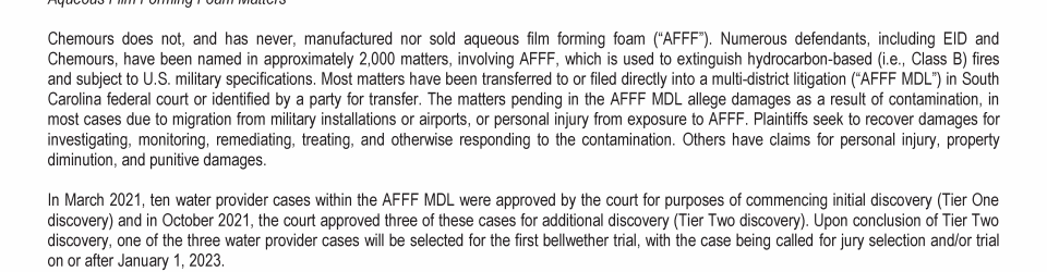 Letter to Chemours Stakeholders