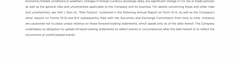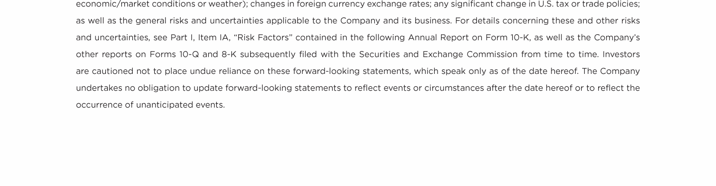 Important Notice to Investors Regarding Forward-Looking Statements