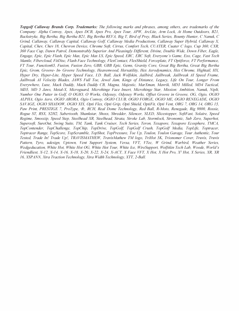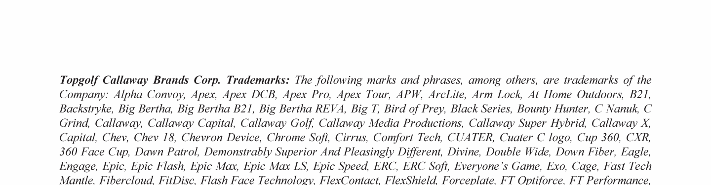 Topgolf Callaway Brands Corp. Trademarks