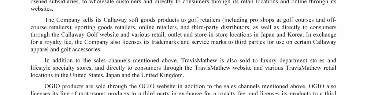 Topgolf Callaway Brands Corp. Trademarks