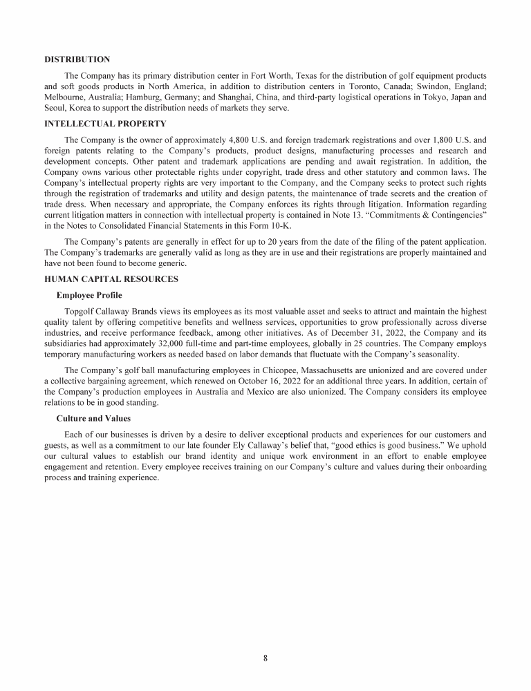 Topgolf Callaway Brands Corp. Trademarks