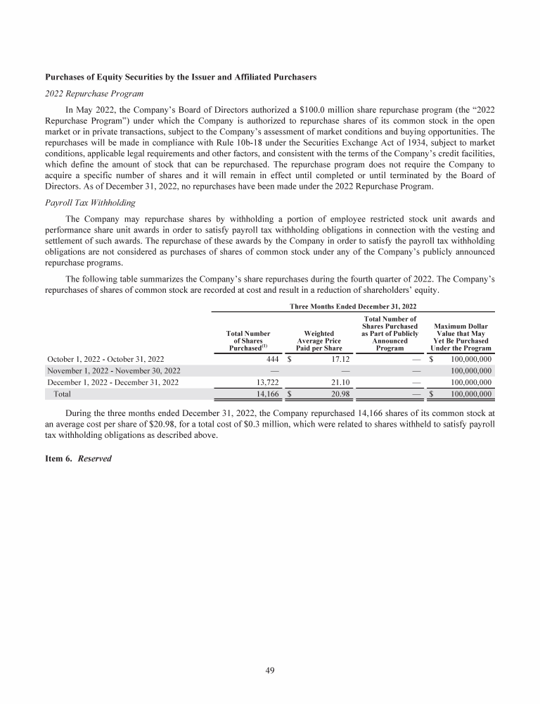 5. Market for Registrant's Common Equity, Related Shareholder Matters and Issuer Purchases of Equity Securities