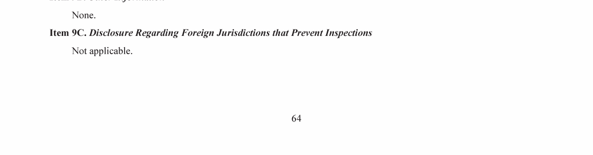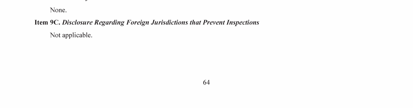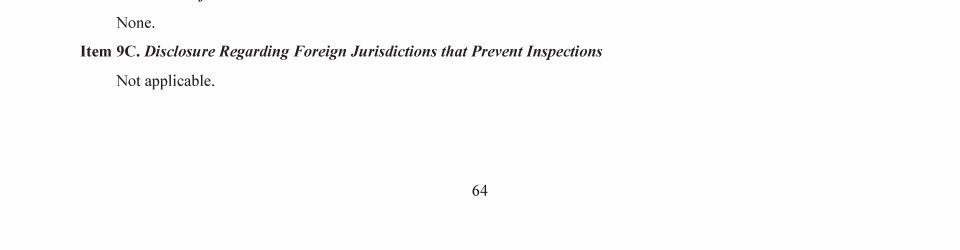 9C. Disclosure Regarding Foreign Jurisdictions that Prevent Inspections