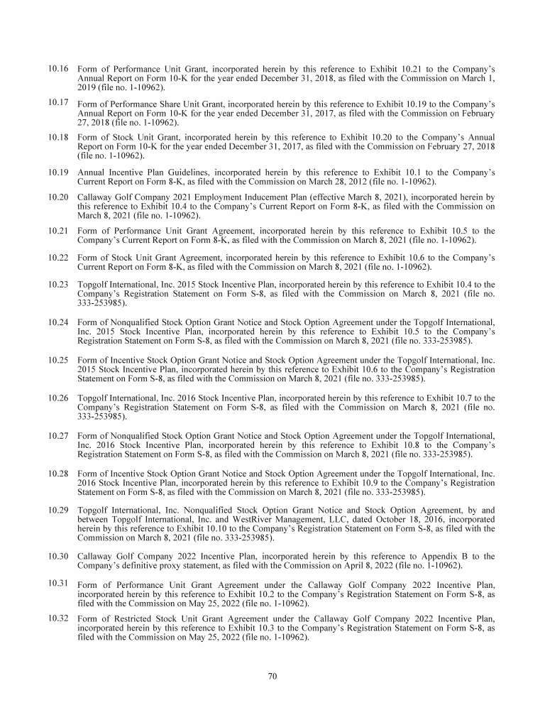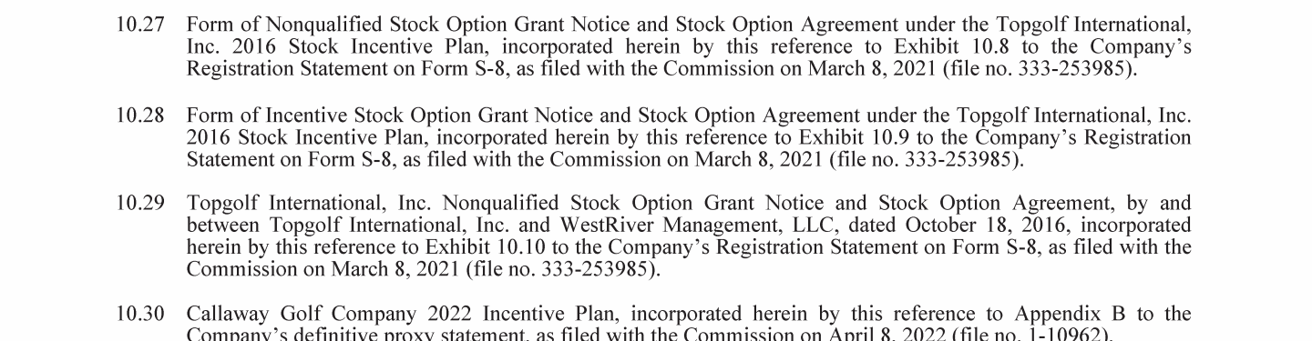 Topgolf Callaway Brands Corp. Trademarks