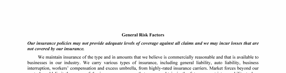 Risk Factors Summary