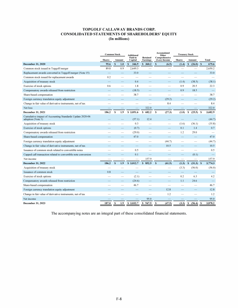 - Consolidated Statements of Shareholders' Equity