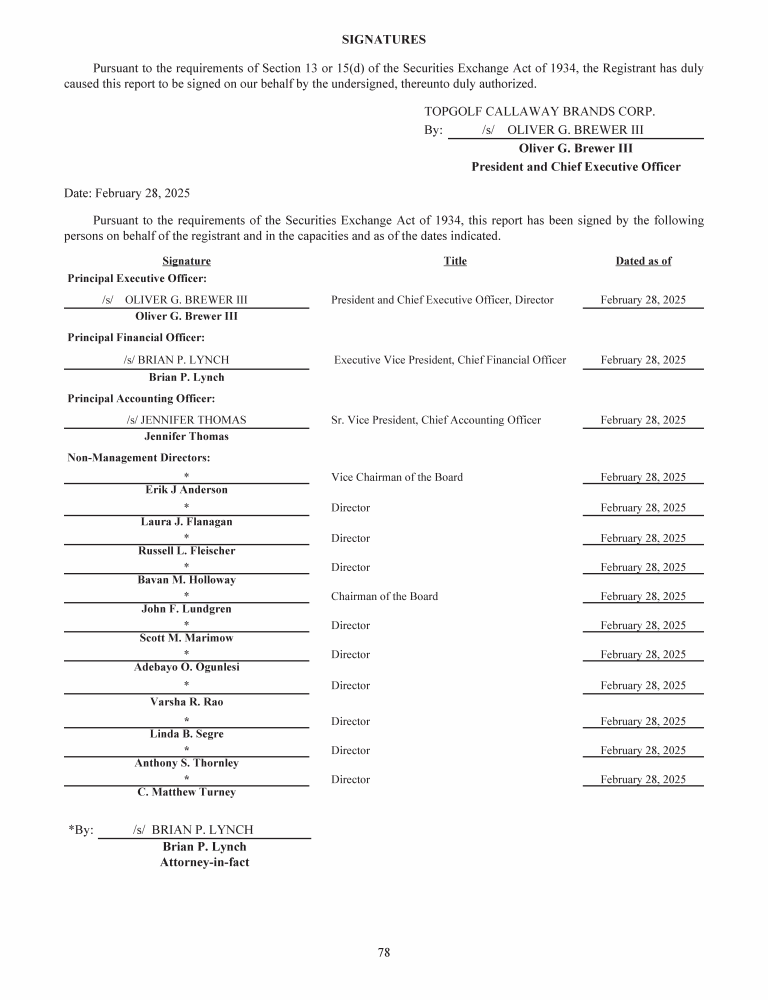 Topgolf Callaway Brands Corp. Trademarks