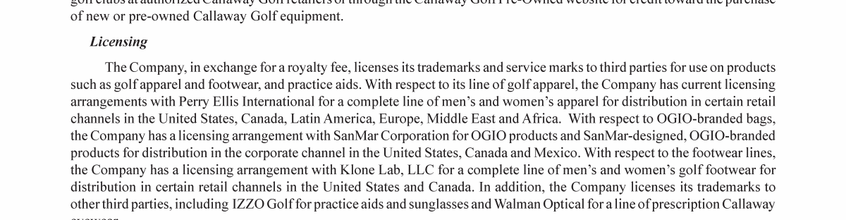 Callaway Golf Company Trademarks