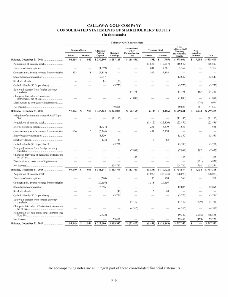 - Consolidated Statements of Shareholders' Equity