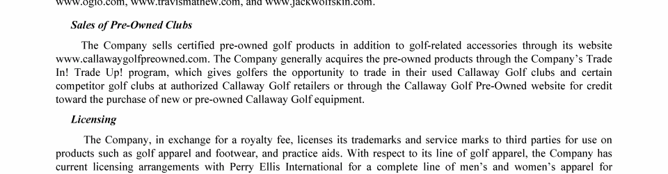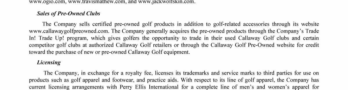 Callaway Golf Company Trademarks