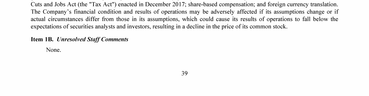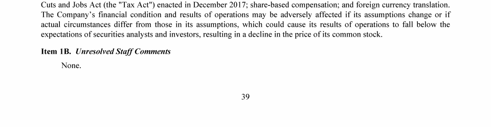 1B. Unresolved Staff Comments