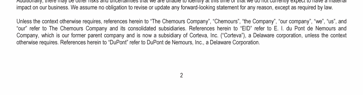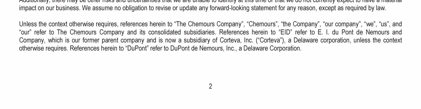 Letter to Chemours Stakeholders