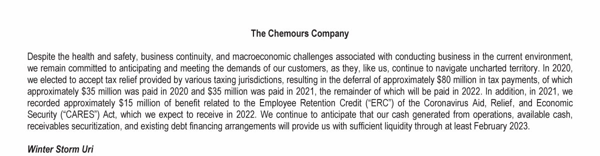 Letter to Chemours Stakeholders