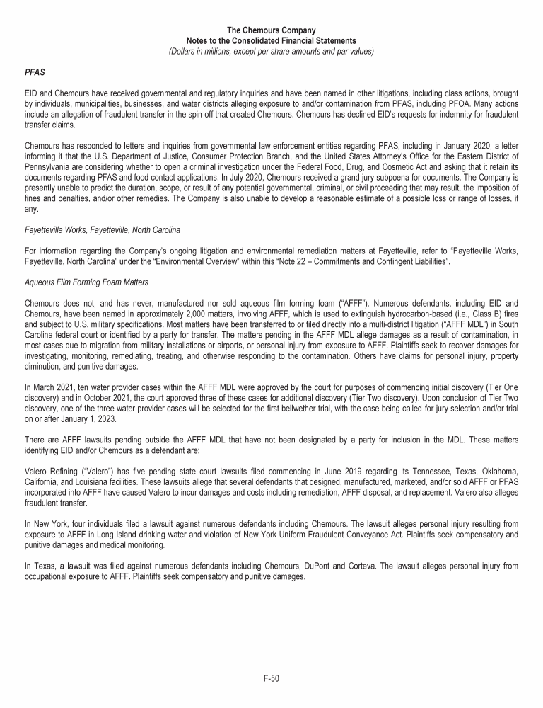 Letter to Chemours Stakeholders