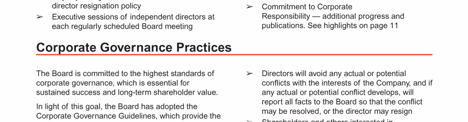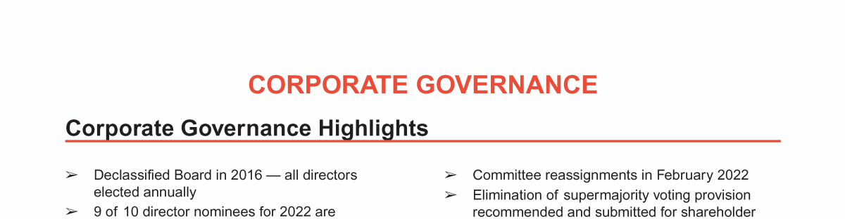 - Corporate Governance Highlights