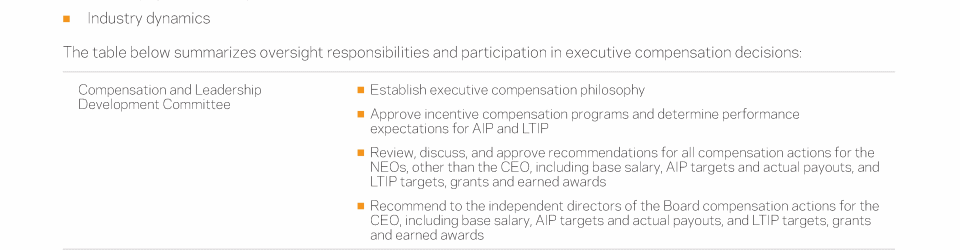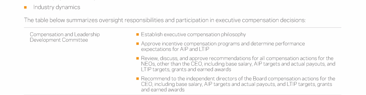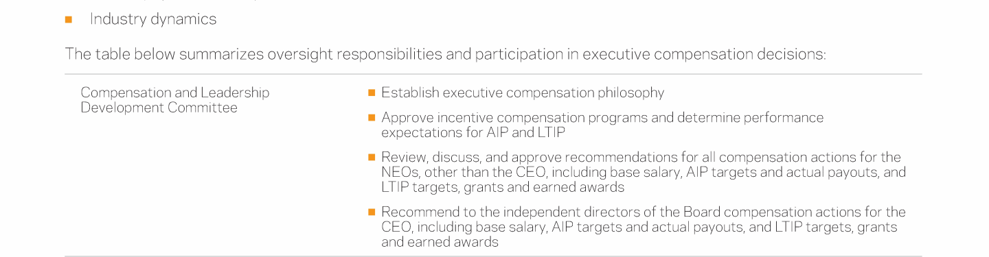 - Compensation and Leadership Development Committee