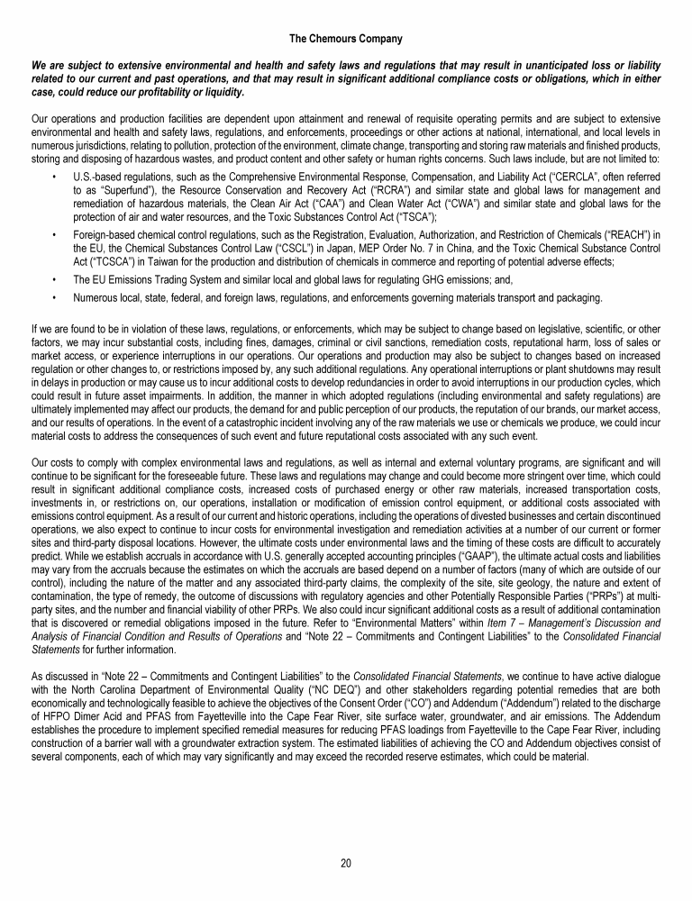 Letter to Chemours Stakeholders