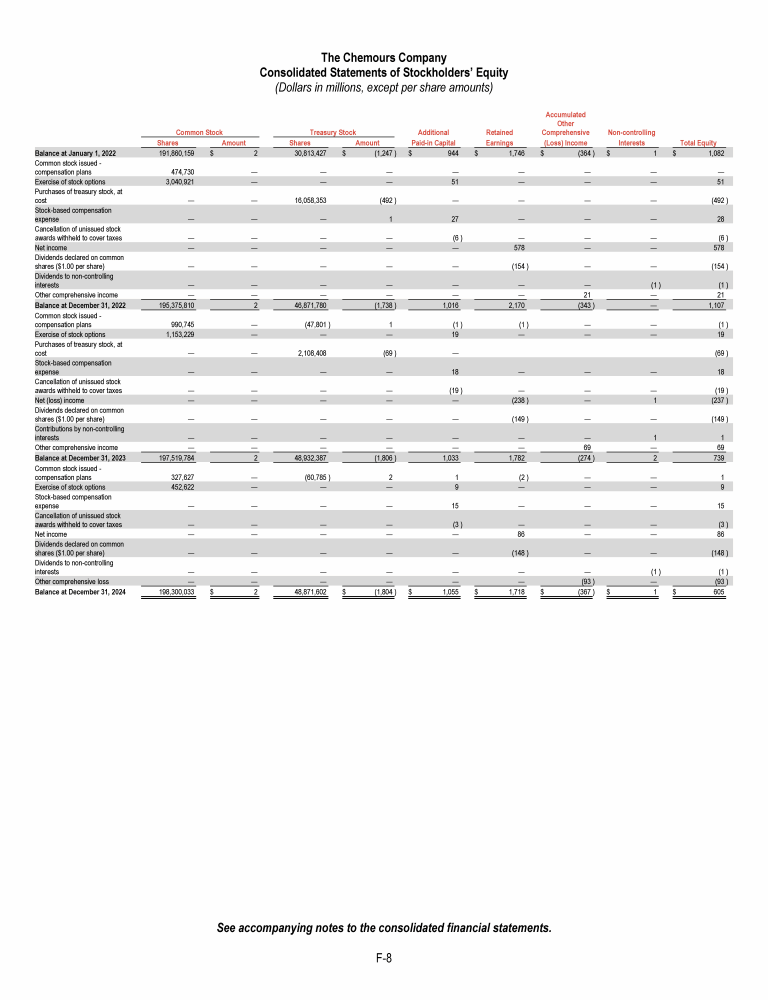 - Consolidated Statements of Stockholders' Equity