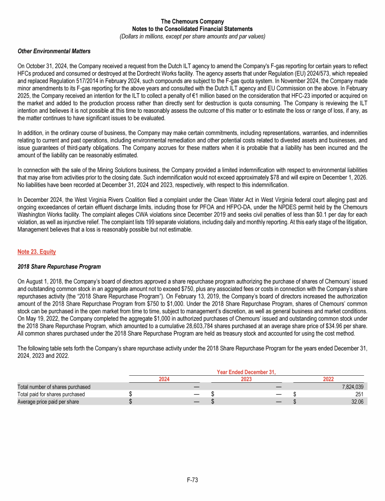 Letter to Chemours Stakeholders