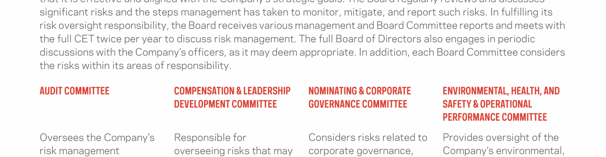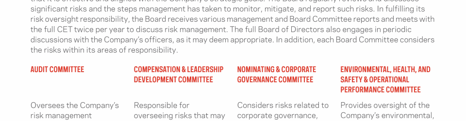 - Environmental, Health, and Safety & Operational Performance Committee