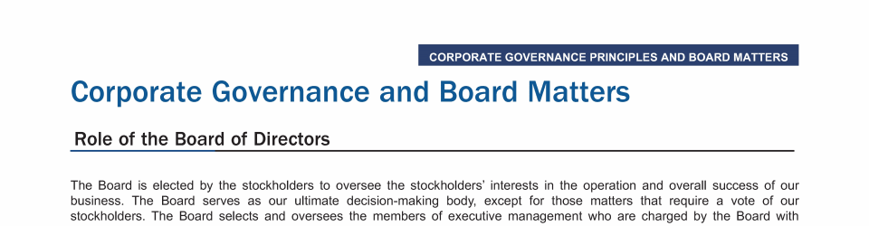 Corporate Governance and Board Matters