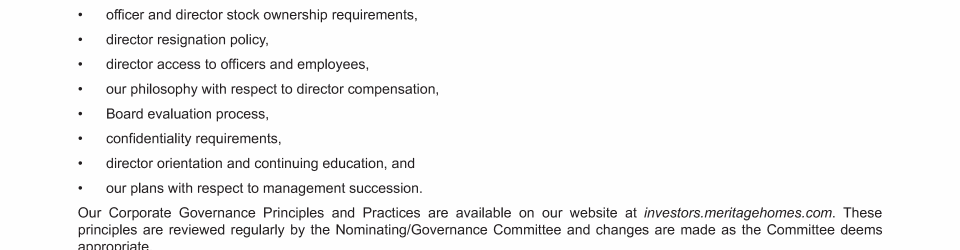 - CEO and Management Succession; Board Composition and Refreshment