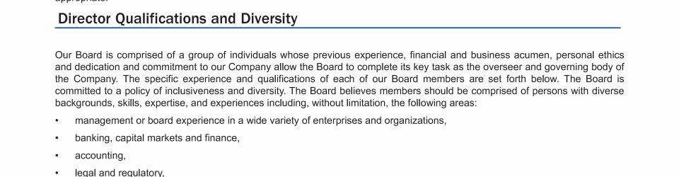 - Director Qualifications and Diversity