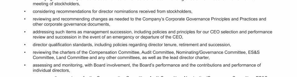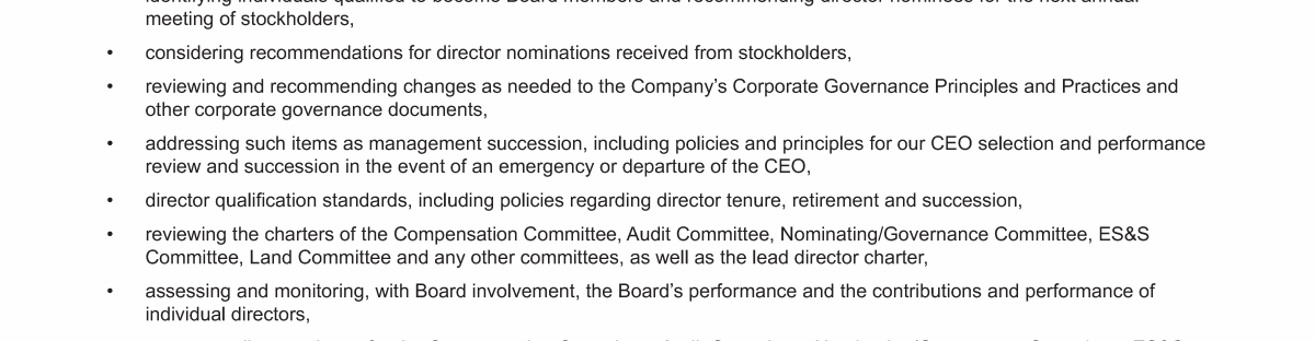 - CEO and Management Succession; Board Composition and Refreshment