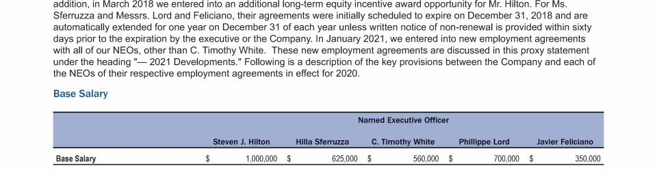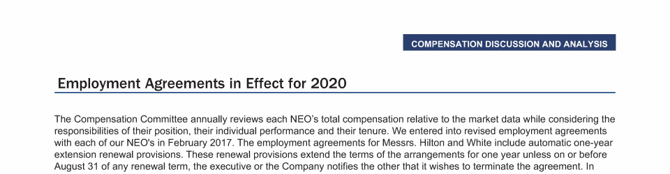 - Employment Agreements in Effect for 2020