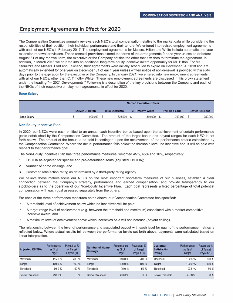 - Other Matters Regarding the Employment Agreements and Change of Control Agreements