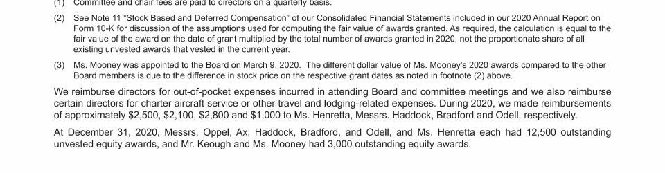 - Outstanding Equity Awards at 2020 Fiscal Year-End