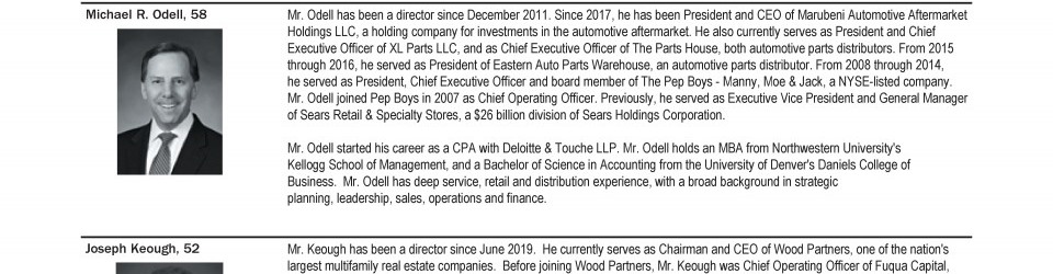 - CEO and Management Succession; Board Composition and Refreshment