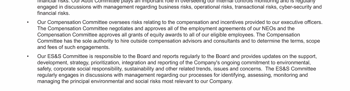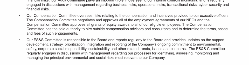 - CEO and Management Succession; Board Composition and Refreshment