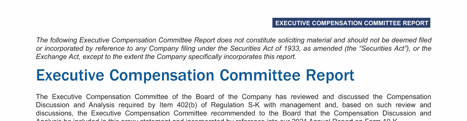 Executive Compensation Committee Report