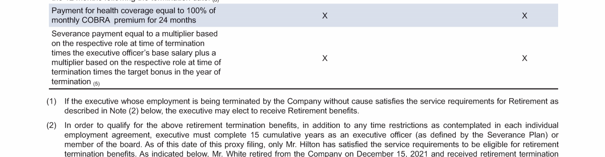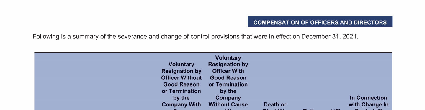- Potential Payments upon Termination or Change of Control Summary