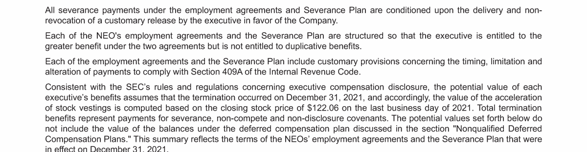 - Potential Payments upon Termination or Change of Control Summary