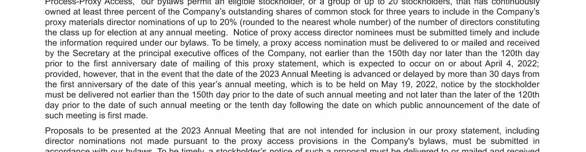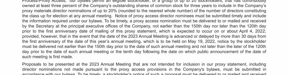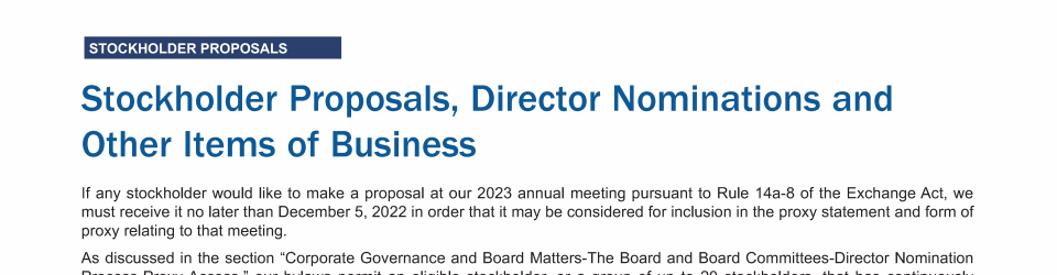 Stockholder Proposals, Director Nominations and Other Items of Business