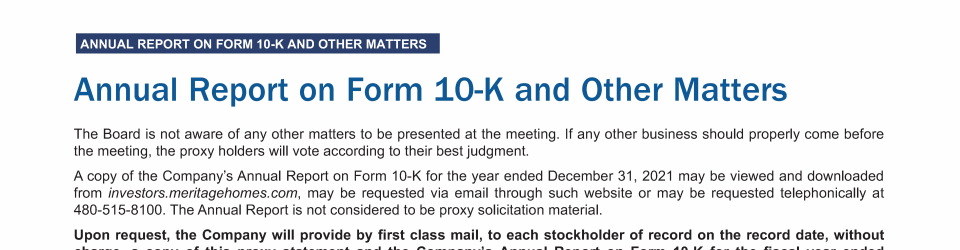 Annual Report on Form 10-K and Other Matters