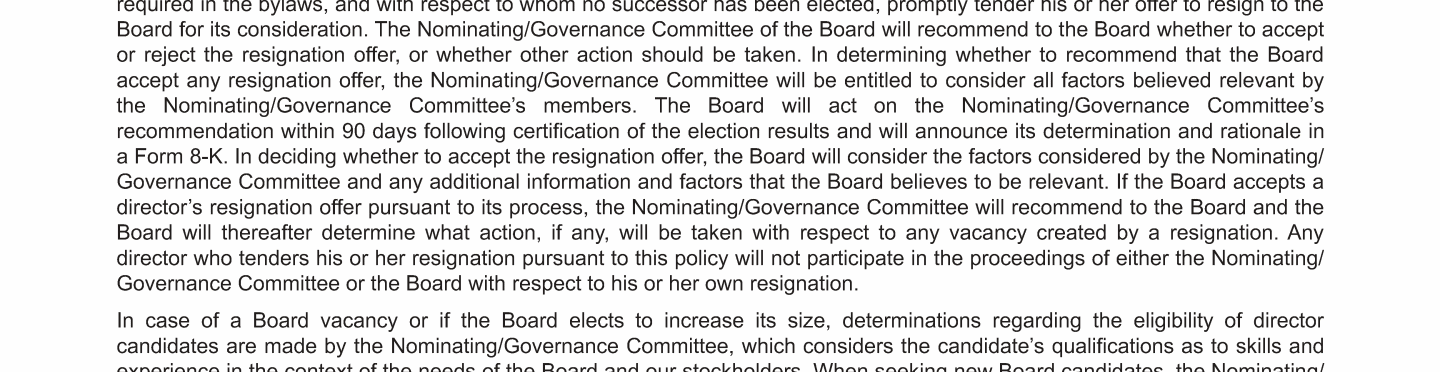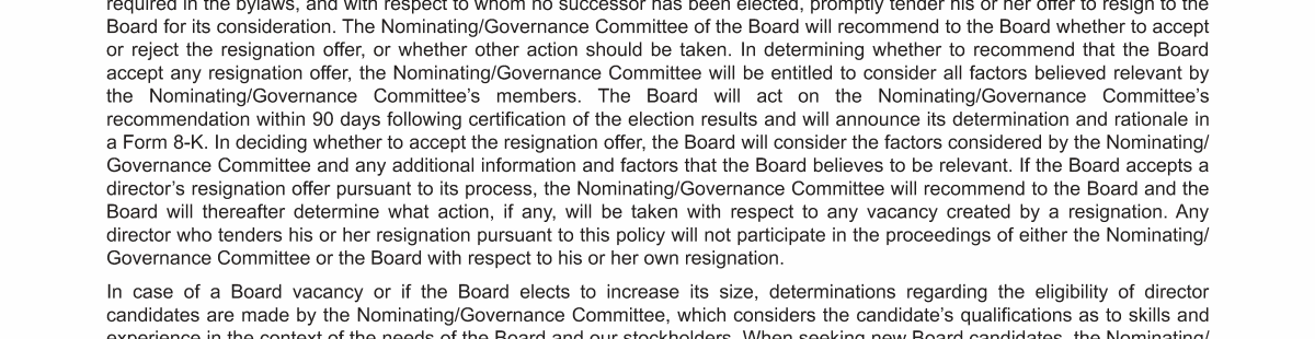 - CEO and Management Succession; Board Composition and Refreshment