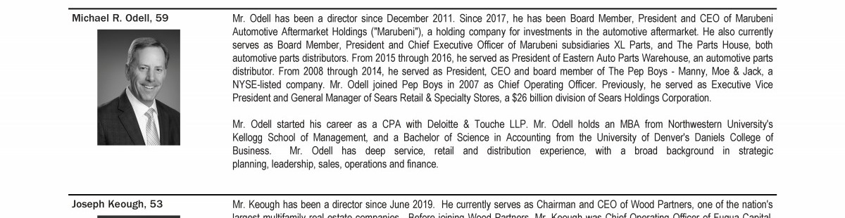 - CEO and Management Succession; Board Composition and Refreshment