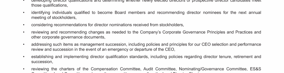 - CEO and Management Succession; Board Composition and Refreshment